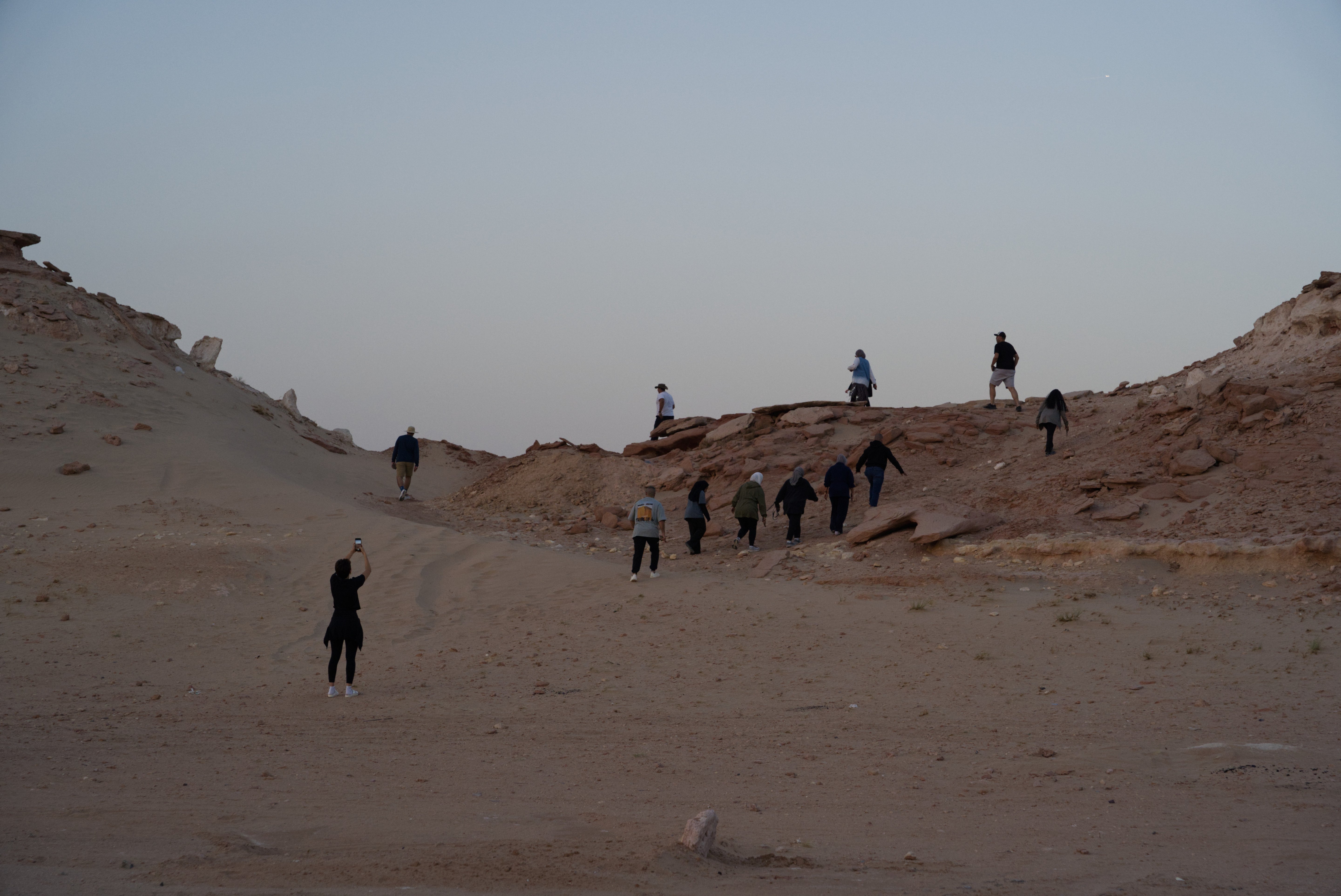 تُختتم الرحلة عند مرتفعات الجون المقدس، مع هايك خفيف ومشاهدة بانورامية لغروب الشمس على شمال الكويت، في نهاية هادئة ومتزنة لليوم.